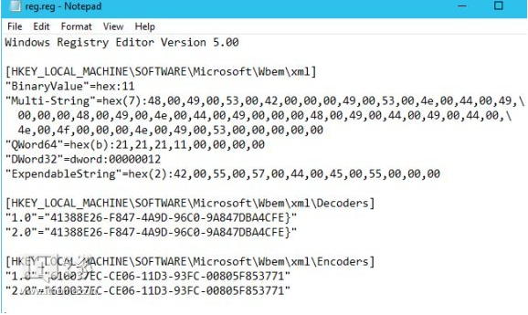 [HKEY_LOCAL_MACHINESOFTWAREMicrosoftWbemxmlEncoders