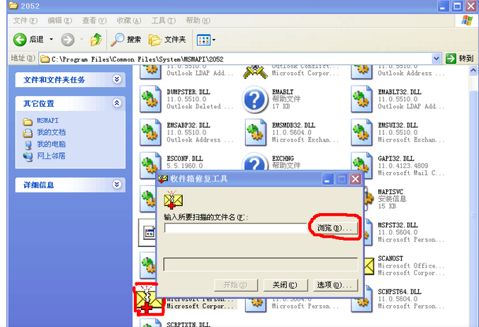 (三) 郵件無法打開 郵件無法打開或者找不到已經刪除的郵件提示“郵件數據文件損壞”,“使用收件箱修復工具修復”,這可能是郵件的數據文件損壞導致郵箱無法使用,可以使用收件箱修復工具進行修復,地址在C:Program FilesCommon FilesSystemMSMAPI?2 雙擊“SCANPST”,點擊瀏覽找到郵件數據文件后進行修復,修復時應先備份郵件再進行修復以防止損壞郵件,修復后郵箱就可以使用了。