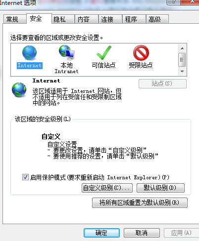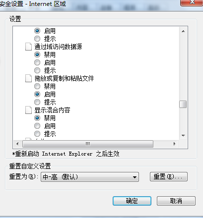 首先我們打開IE8瀏覽器,選擇“工具”→“Internet選項”。然后進入安全頁面,點擊下面的“自定義級別”按鈕。會找到“顯示混合內容”選項,將默認的“提示”,改成“啟用”,點擊“確定”按鈕保存退出。